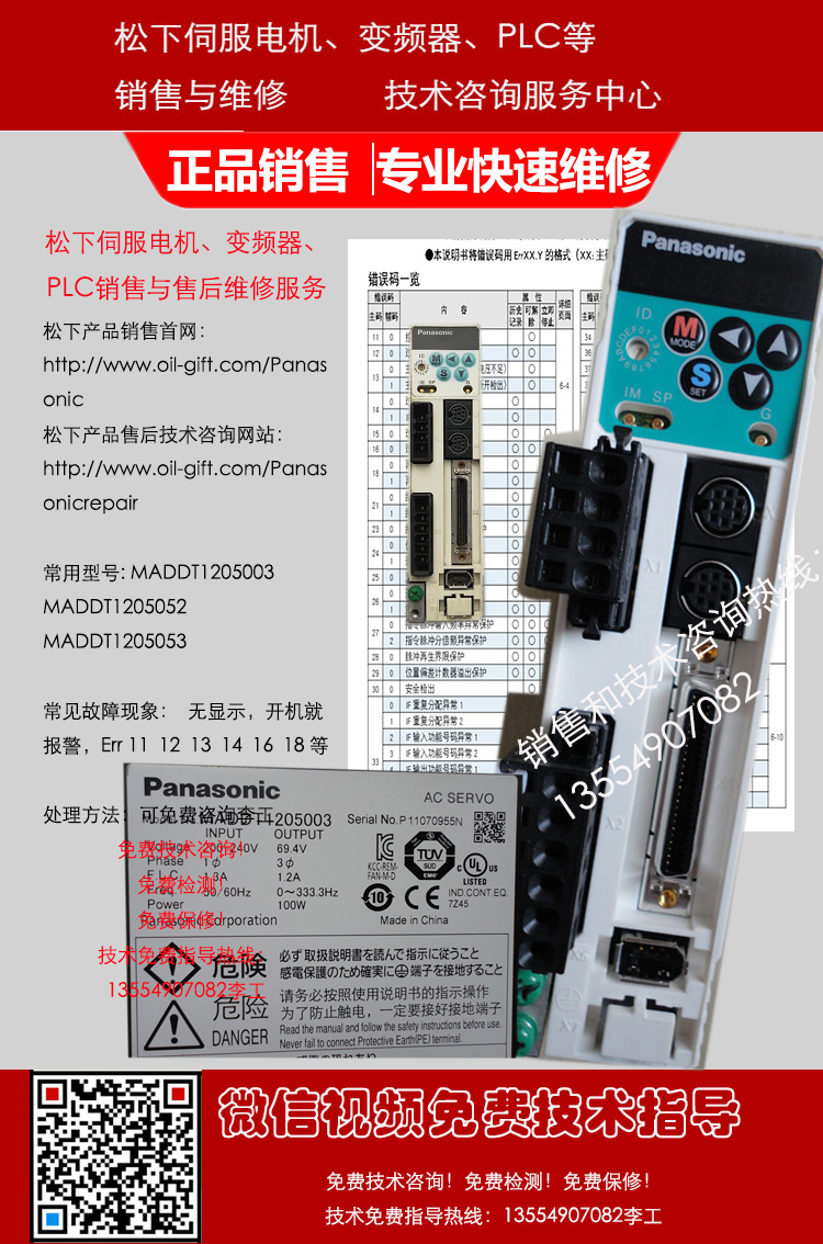 松下MINAS A4系列通用型,脉冲型驱动器MADDT1205 MADDT1205003 MADDT1205053 MADDT1205052 MADDT1205N MADDT1205N01 MADDT1205N21 MADDT1205P MADDT1205P01