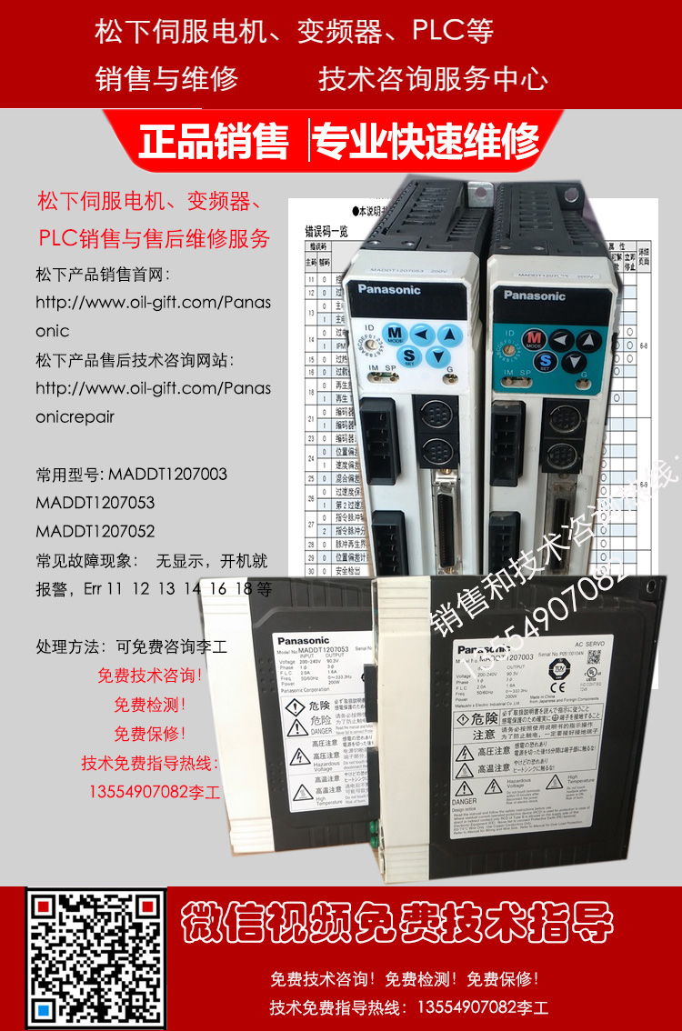 松下MINAS A4系列通用型,脉冲型驱动器MADDT1207 MHMD022P1V MADDT1207003 MSMD022P1V MADDT1207053 MHMD022P1U MADDT1207052 MHMD022P1C MADDT1207N01 MSMD022P1U MADDT1207N MSMD022P1C