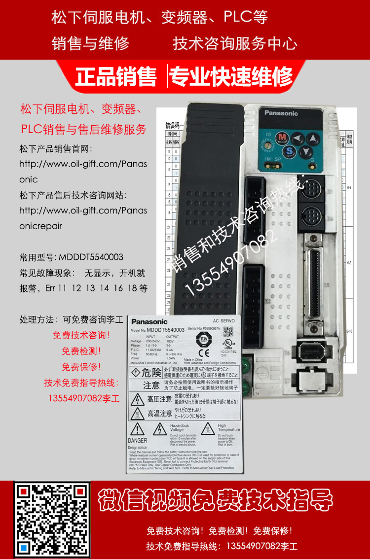 松下MINAS A5驱动器MDDHT5540 MDME152G1G MSME102G1G MSME102G1H MDDHT5540CA1 MDDHT5540E MDDKT5540 MDDKT5540E MDDKT5540CA1 MHME152G1G MHME152G1H