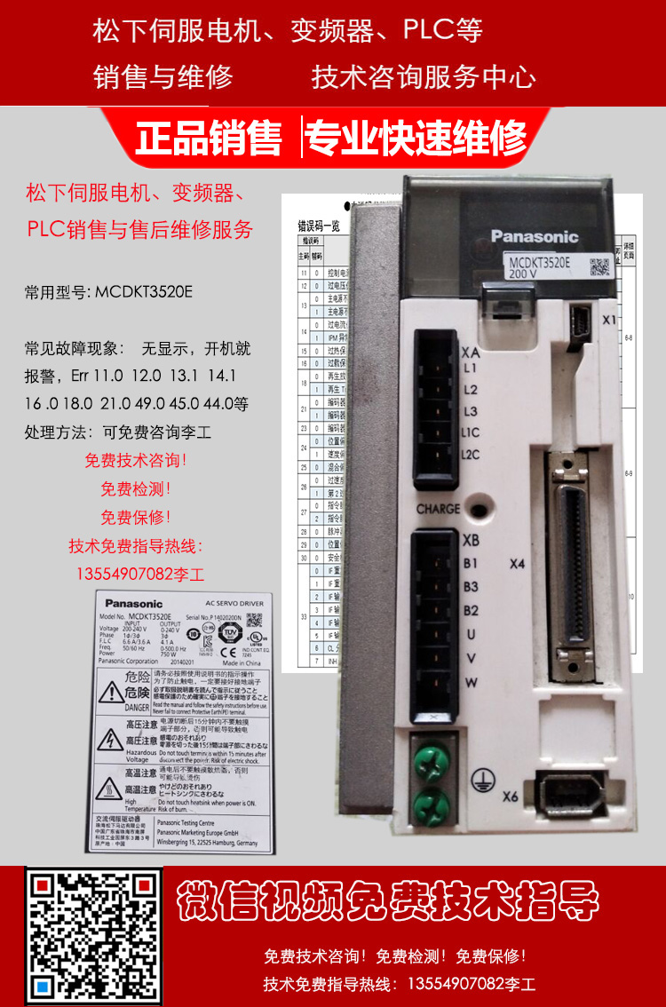 松下MINAS A4系列驱动器MCDDT3520 MHMD082P1U MCDDT3520003 MSMD082P1V MCDDT3520053 MHMD082P1U MCDDT3520052 MHMD082P1C MHMD082P1V MCDDT3520N MSMD082P1V
