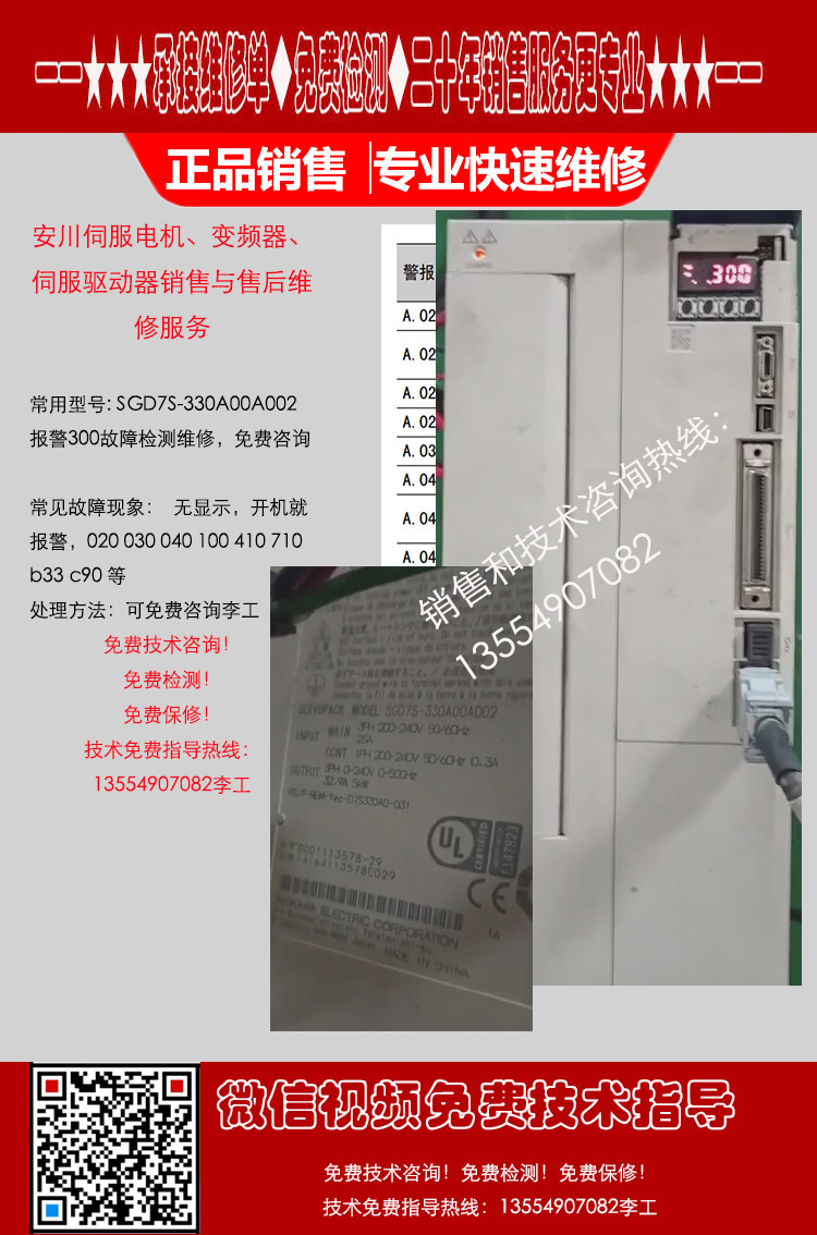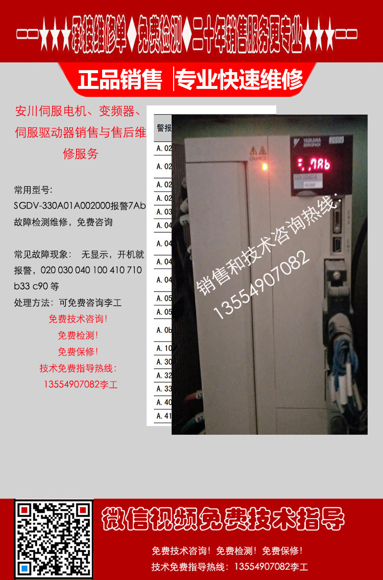 安川驱动器SGD7S-330A00A002故障代码300报警检测维修故障咨询服务