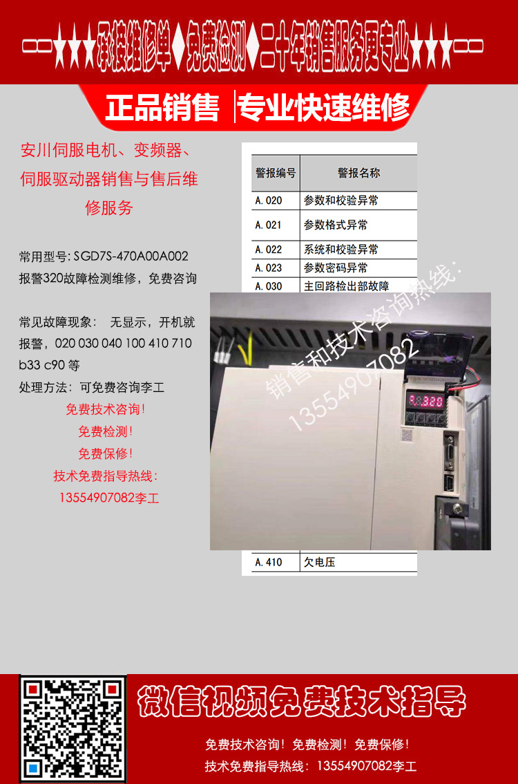 安川驱动器SGD7S-470A00A002报警320故障检测维修咨询服务