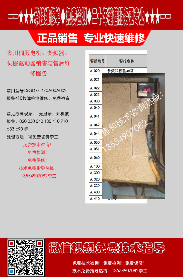 安川驱动器SGD7S-470A00A002报警410故障检测维修咨询服务