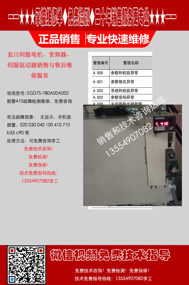 安川驱动器SGD7S-780A10A002故障代码410检测维修说明书下载咨询服务